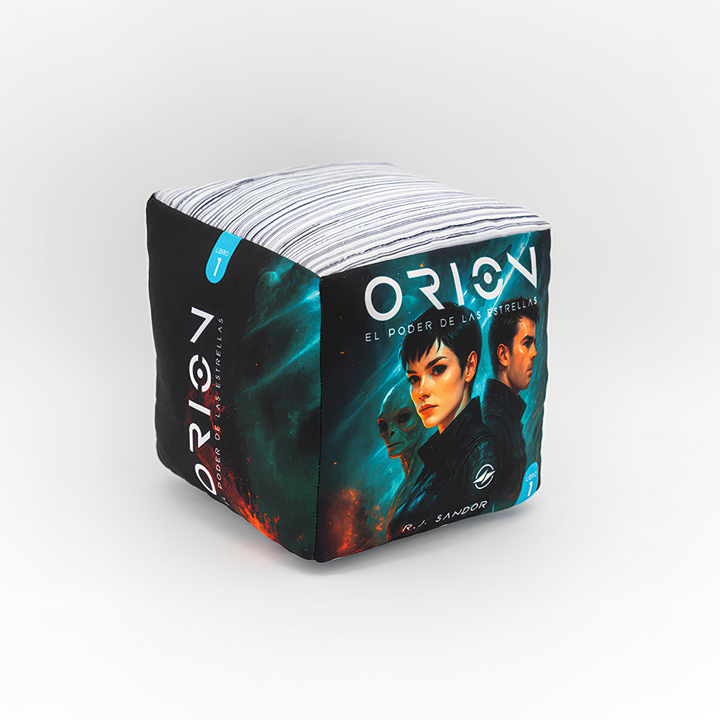 Este exclusivo almohadón en forma de cubo convierte el libro Orión: El poder de las estrellas en una pieza de colección que puedes abrazar. Con un diseño impreso en alta calidad en sus seis caras, recrea la portada y detalles del libro como si tuvieras la historia en tus manos, pero en versión suave y decorativa. Está elaborado con materiales cómodos y duraderos, ideal para tu habitación, sala o rincón de lectura. Más que una almohada, es un tributo tangible al universo Orión, pensado para lectores que quieren llevar su pasión más allá de las páginas.