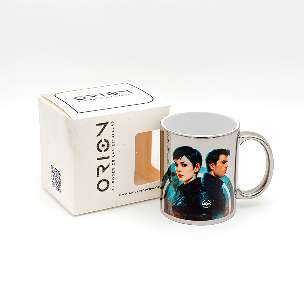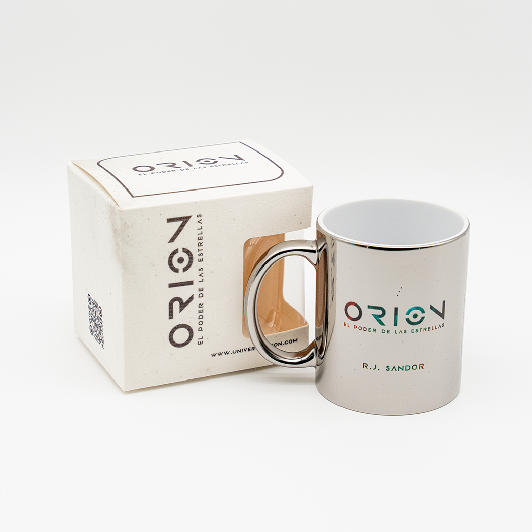 Taza de cerámica de 11 oz con acabado metálico tipo espejo, inspirada en el universo de Orión: El poder de las estrellas. Su superficie brillante refleja la luz como un astro, mientras el diseño de Orión aporta un toque galáctico y misterioso. Ideal para disfrutar café, té o chocolate mientras te sumerges en la historia del libro o decoras tu espacio con estilo cósmico. Resistente, elegante y con un acabado premium, es una pieza de colección para quienes aman la ciencia ficción, los objetos únicos y el diseño estelar. Perfecta para regalar o para acompañarte en tus momentos de inspiración.